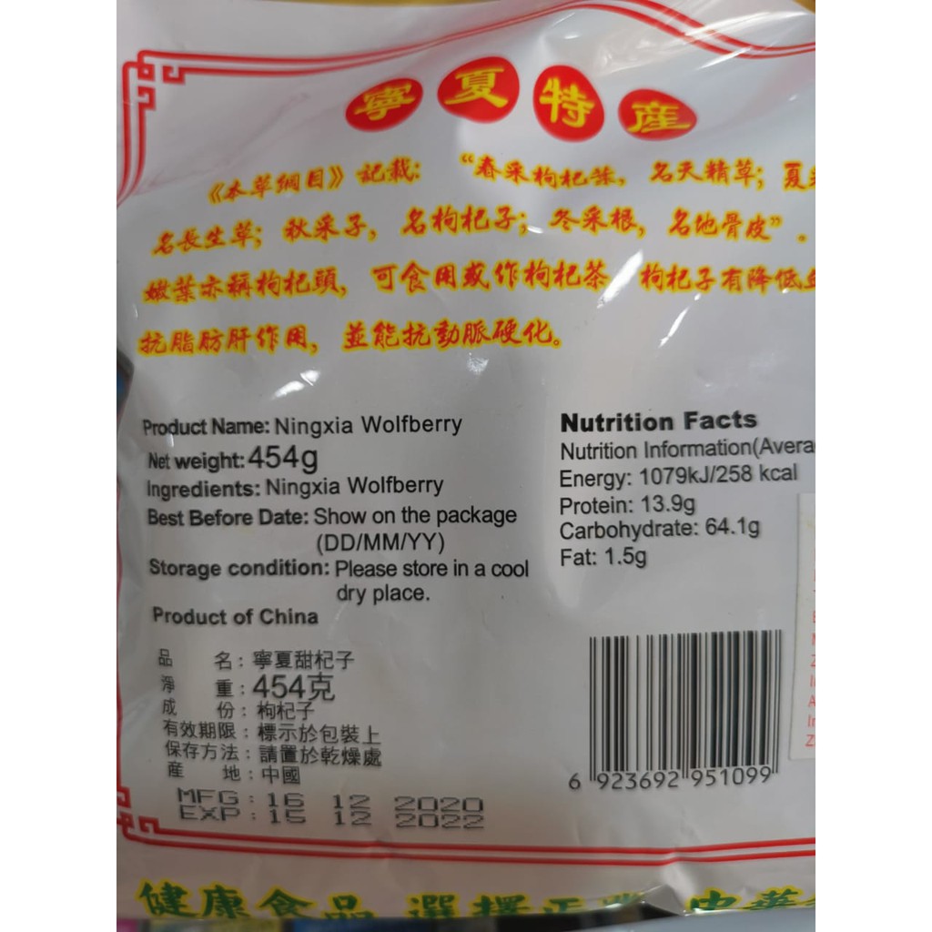 Ningxia nutrition facts
