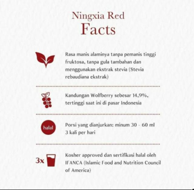 PDF Product Summary - Ningxia • NingXia Red contains blueberry, cherry, aronia, pomegranate, and plum fruit juices, which are hand selected for their bioactive phytonutrients and ability to support cascading energy.* • The recommended consumption of 2-4 ounces of NingXia Red 2 times daily is based on current whole wolfberry research. Product Information