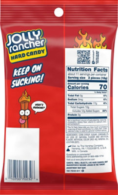 Calories in Jolly Ranchers - Healthfully The fruit flavor that comes from a Jolly Rancher is powerful. Calories According to the Hershey's website, a serving of Jolly Ranchers is three candies and contains 70 calories. Each individual candy contains approximately 23 calories. Fat-Free Jolly Ranchers are a fat-free candy, meaning that none of the candy's calorie count contains fat.