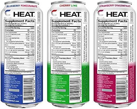 Celsius Heat Review - 13 Things You Need to Know - DietSpotlight There are multiple Celsius Heat products, but the general nutrition facts to expect are: Calories: 15 Carbs: 2g The remaining nutrition facts are nothing more than a list of ingredients, but we're not sure how much we can trust the label. The 2g of carbohydrates are listed as less than 1% of the daily value.