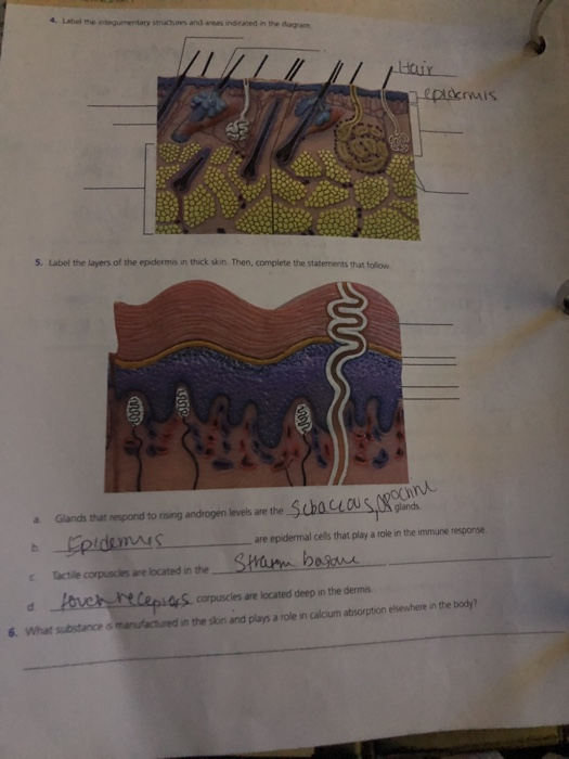 42 label the layers of the epidermis in thick skin