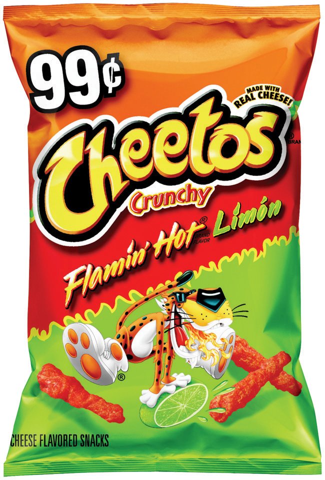 CHEETOS® Crunchy FLAMIN' HOT® Limón Cheese Flavored Snacks | Cheetos Description Hot, spicy flavor that leaves a zesty zing on your tongue. CHEETOS ® Crunchy FLAMIN' HOT ® Limón Cheese Flavored Snacks are full of flavor and made with real cheese. Nutrition Facts Ingredients Buy Now Buy Now CHEETOS® Crunchy FLAMIN' HOT® Limón Cheese Flavored Snacks (opens a popup) Product Reviews ★★★★★ ★★★★★ 4.6 7 Reviews